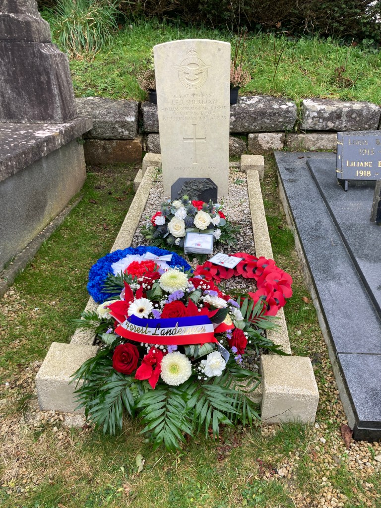 In February 2024 a special remembrance ceremony was held at le Forest-Landerneau, near Brest to commemorate Sgt James Sheridan with the family at the anniversary of his death in 1941. The ceremony was attended By French Veterans (UNC ) Souvenir Français, The Royal British Legion and many local people. Sgt Sheridan’s nephew, whom we had managed to trace, read out a eulogy written by Jacks brother before he himself passed away.