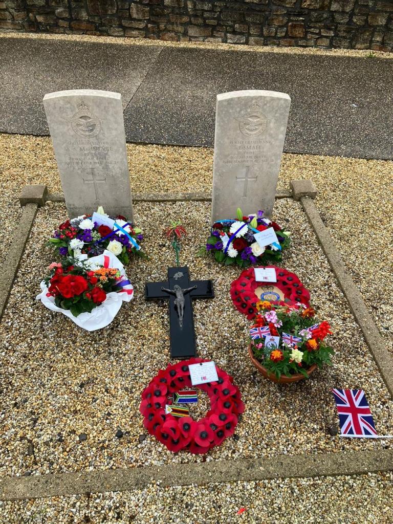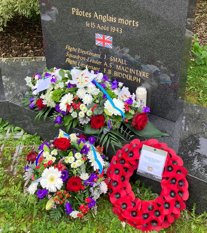 Squadron Leader Sandy MacIntyre from South Africa and Flight Lieutenant Johnie Small from Fife in Scotland are buried in the local cemetery. 2023 was the 80th Anniversary of the combat in which they lost their lives. Families of both men attended a special commemoration ceremony on 8 May “Victory in Europe” day